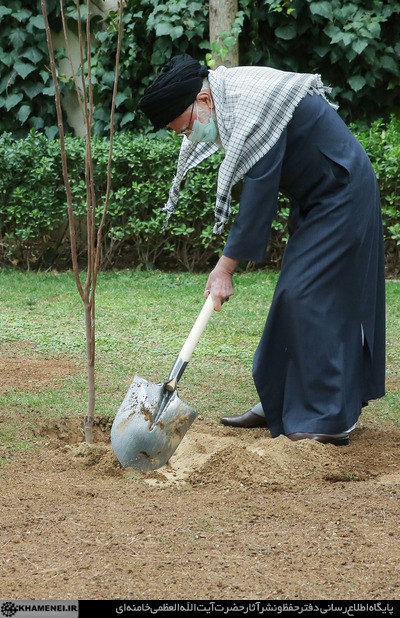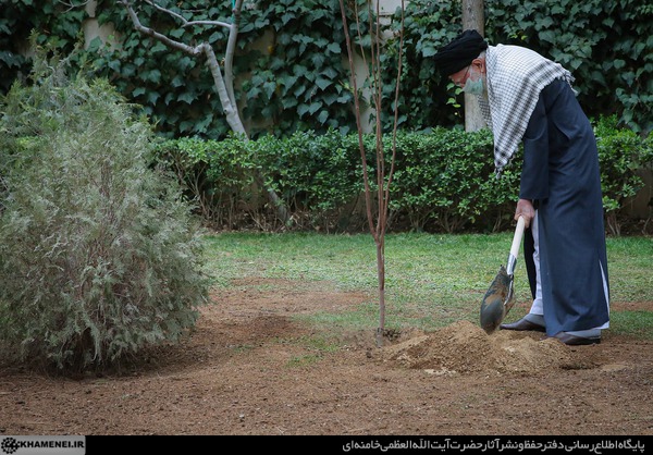 به مناسبت روز درختکاری و هفته منابع طبیعی، رهبر معظم انقلاب اسلامی پیش از ظهر (جمعه) امروز دو اصله نهال کاشتند.