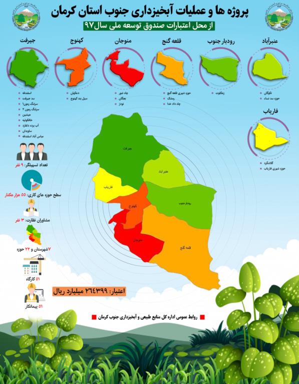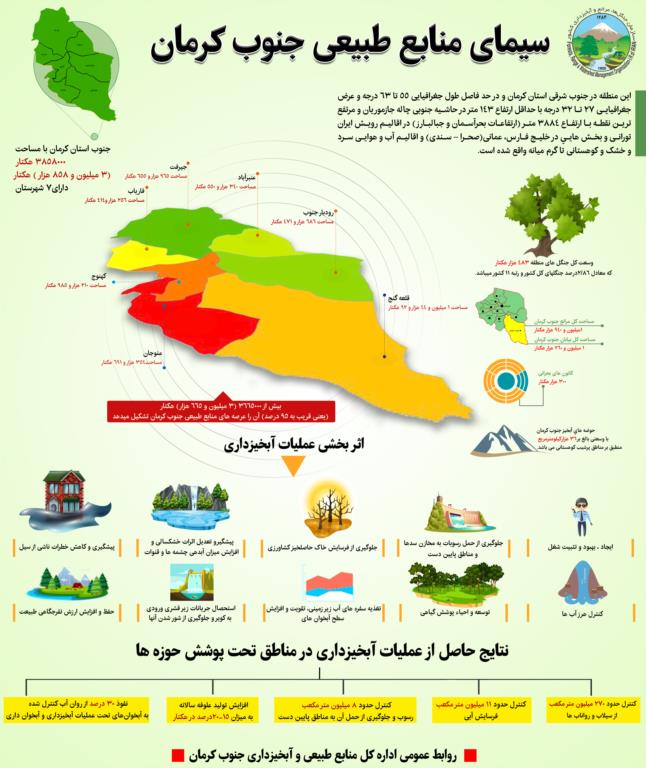 اینفوگرافیک، پروژه ها و عملیات آبخیزداری جنوب کرمان/ سیمای منابع طبیعی و آبخیزداری جنوب کرمان