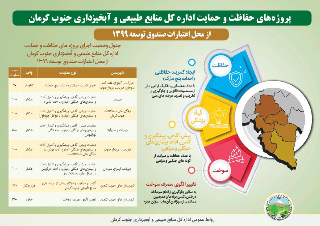 اینفوگرافیک/ پروژه های حفاظت و حمایت اداره کل منابع طبیعی و آبخیزداری جنوب کرمان
