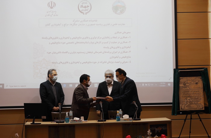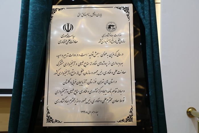 مراسم بهرهبرداری از پروژههای فناورانه منابع طبیعی و آبخیزداری مشترک معاونت علمی و فناوری ریاست جمهوری و سازمان جنگلها، مراتع و آبخیزداری کشور در استان های تهران، خوزستان، آذربایجان غربی و گلستان و انعقاد تفاهمنامه فیمابین برای ایجاد مرکز نوآوری و فناوری منابعطبیعی و آبخیزداری، با حضور دکتر سورنا ستاری؛ معاون علمی و فناوری رئیس جمهور و دکتر کاظم خاوازی؛ وزیر جهاد کشاورزی برگزار شد.