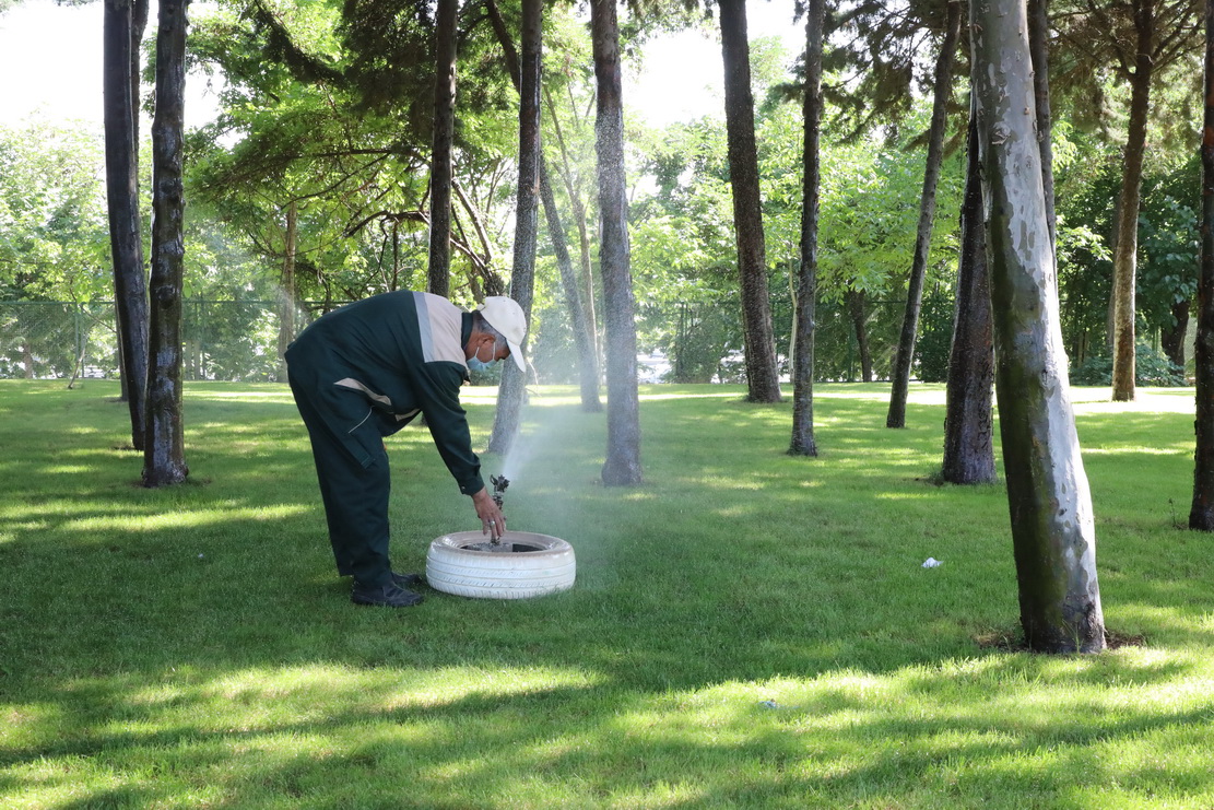 سیستم آبیاری برای فضای سبز و درختان به شیوه آبیاری فواره ای است و امسال به خاطر خشکسالی و کاهش بارندگی صرفه جویی آب را با مدیریت بیشتر در دستور کار قرار داده ایم. خدا را شکر می کنم که چاه آب سازمان مثل سفره منابع طبیعی همیشه پر برکت بوده و هست.