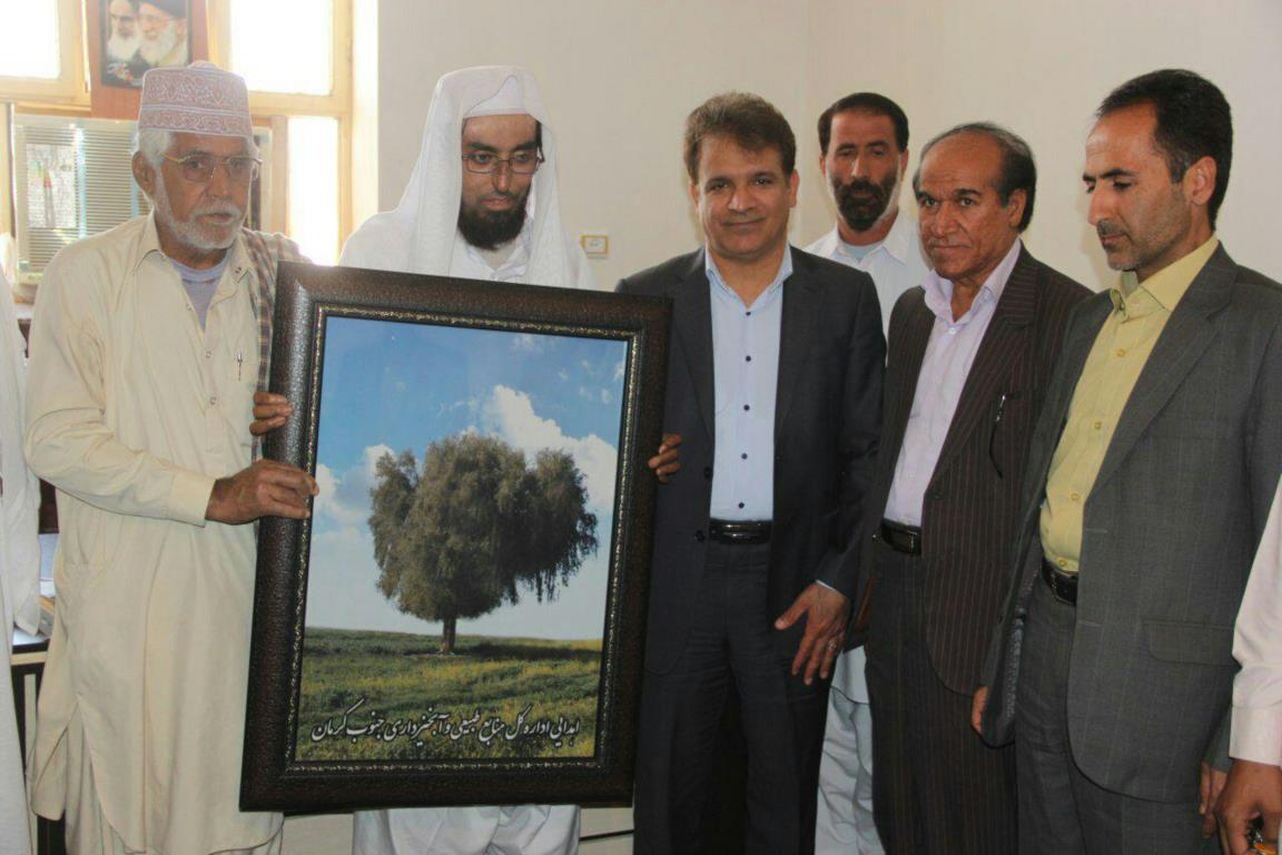 به گزارش خبرنگار پیام طبیعت جنوب کرمان،دکتر محمدحسن کردستانی مدیرکل منابع طبیعی و آبخیزداری جنوب کرمان به همراه جمعی از همکاران خود، ضمن دیدار با مولوی یونس چاهانی امام جمعه اهل تسنن رمشک اظهار داشت: گام نهادن در عرصه هاي حفظ و حراست از منابع طبيعي، علاوه بر عزمي برخاسته از تعهد، ايثار، عشق و قدم هايي محكم و استوار ، نياز به بصيرتي دين مدار و بينشي عميق دارد.