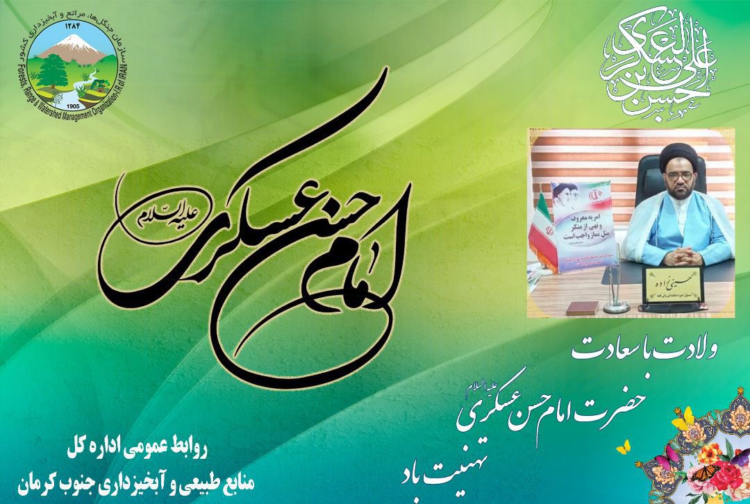 پیام تبریک حجت الاسلام والمسلمین حسینی زاده مسئول حوزه نمایندگی ولی فقیه اداره کل منابع طبیعی و آبخیزداری جنوب کرمان به مناسبت سالروز ولادت با سعادت امام حسن عسکری(ع)...